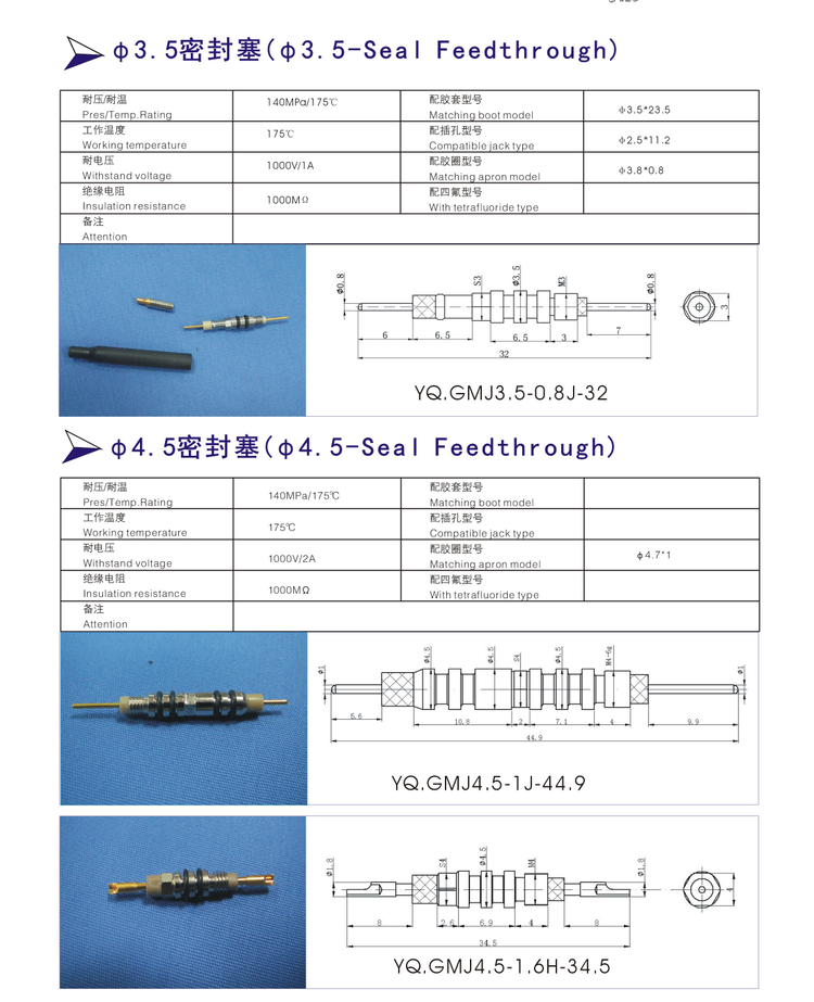 石油探針密封塞,種類多,探針有粗細,長短有多少,采用PEEK進口熱性塑料,耐高溫,粘合性能強,抗腐蝕。