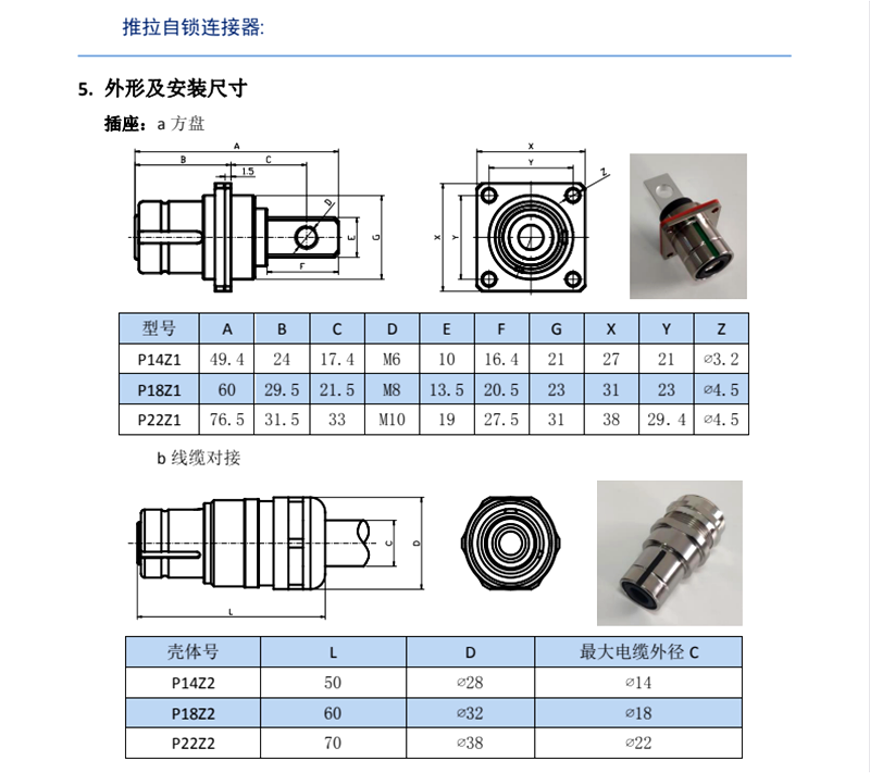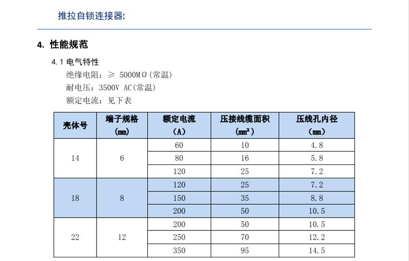 該系列電連接器是公司新開發產品,配套與新能源汽車,充電樁電源的連接,電流大小不一樣,壓接線纜的平方也不一樣。為防止誤插設計了3個不同的鍵位,5個色標外殼。連接方式推拉鎖緊,快捷方便。插座端接形式有三種:1壓接式 2.焊接式 3.線鼻子連接固定。