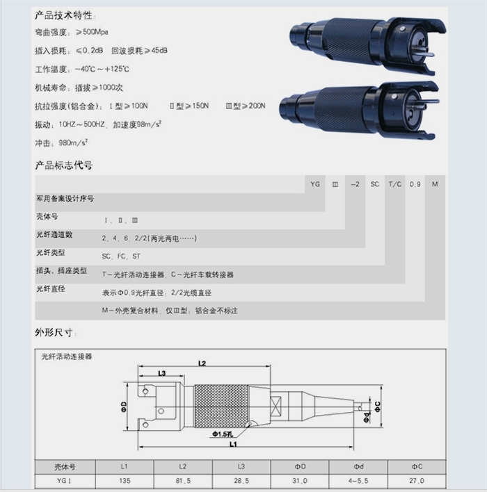 野戰(zhàn)光纜連接器,有兩種:一種塑料殼體,一種金屬殼體。插座是一頭固定在機(jī)箱上,一頭活動(dòng)鏈接,陶瓷插針,光傳輸,速度極快。是光纖與光纖之間進(jìn)行可拆卸(活動(dòng))連接的器件,它把光纖的兩個(gè)端面精密對(duì)接起來(lái),以使發(fā)射光纖輸出的光能量能最大限度地耦合到接收光纖中去,并使由于其介入光鏈路而對(duì)系統(tǒng)造成的影響減到最小,這是光纖連接器的基本要求。在一定程度上,光纖連接器影響了光傳輸系統(tǒng)的可靠性和各項(xiàng)性能。 結(jié)構(gòu)形式 FC、SC、ST、LC ST連接器 布線設(shè)備端 ,用于光纖間可重復(fù)插拔的連接器件,也稱光纖活動(dòng)接頭。