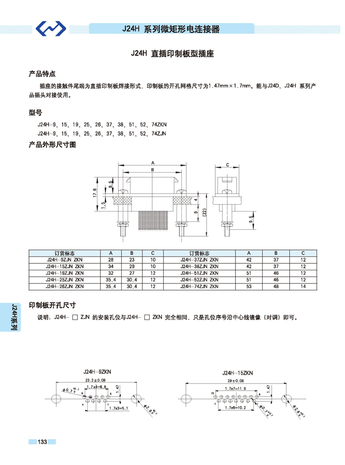 J24H-52ZKW/TJ矩形電連接器,接點(diǎn)間距1.7mm,具有快鎖快卸的功能,在同類型結(jié)構(gòu)中體積最小,金屬外殼連接器,操作簡便,用于低頻信號(hào)的傳輸。
