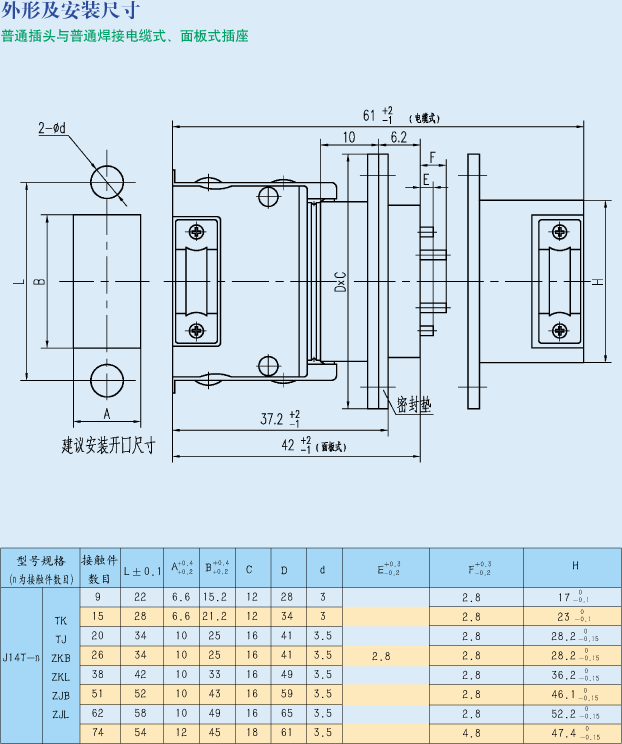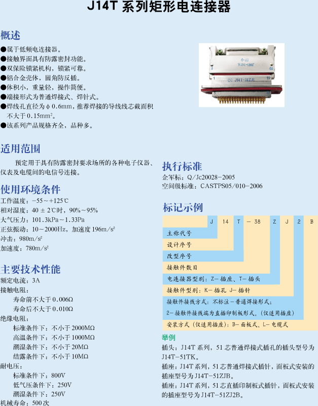 J14T-38ZJ2B/TK矩形航空插頭座,屬于低頻連接器,雙重鎖緊結構,與鄭州航天電子執行統一標準,可以互換。