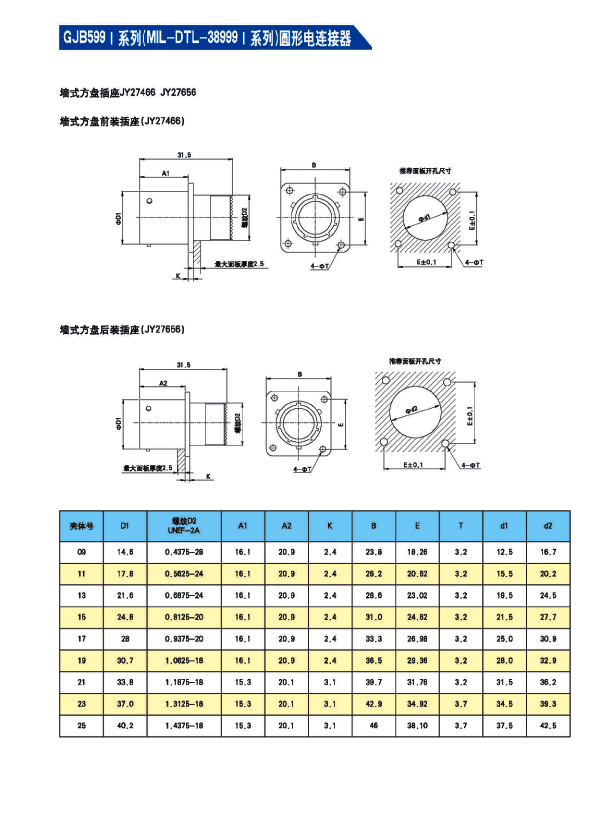 JY27466E11T35SN/PN航空插座,體積不大,質(zhì)量輕,接點密度高,插座現(xiàn)有三種形式,墻式方盆座,盒式方盆座,螺母安裝插座,形狀與尺寸個不相同。