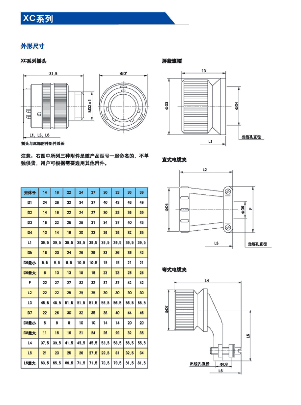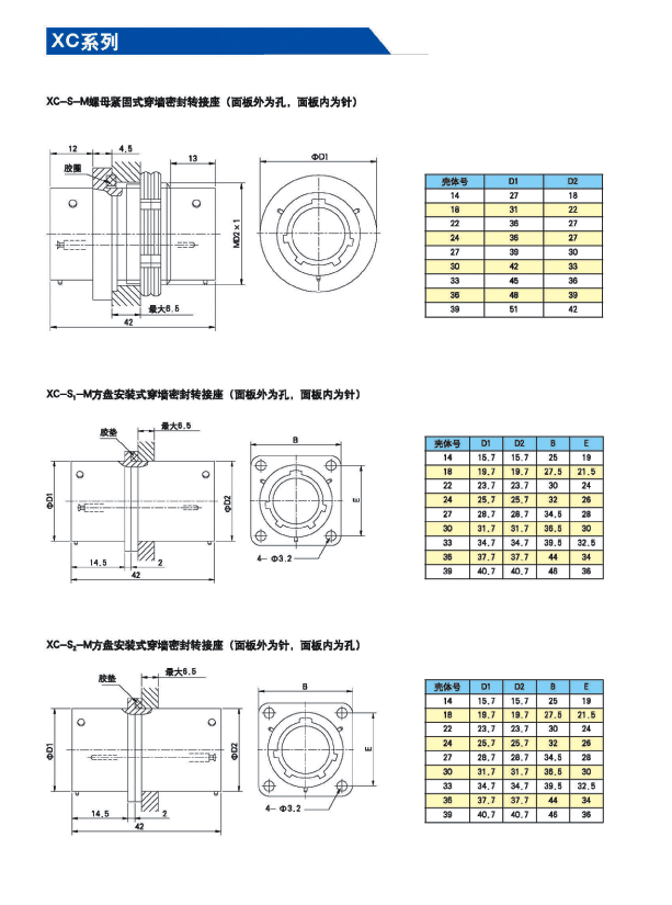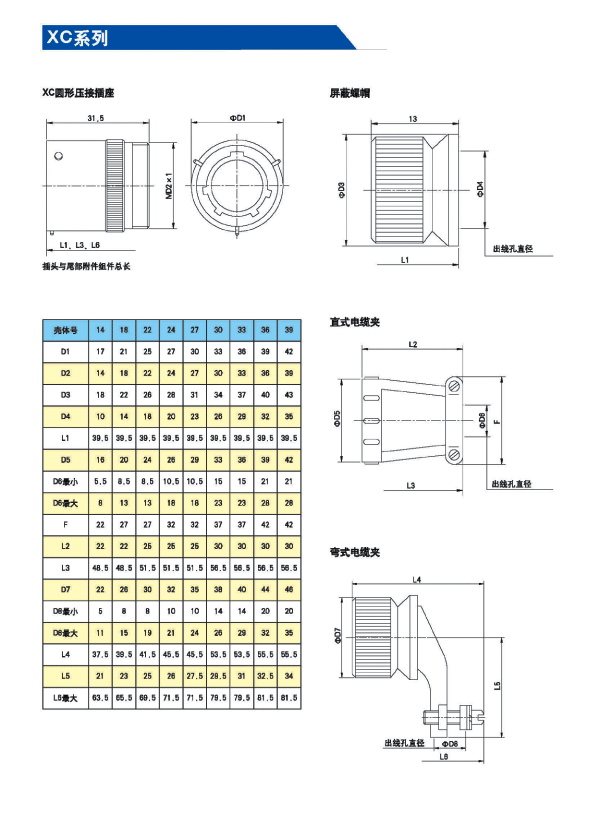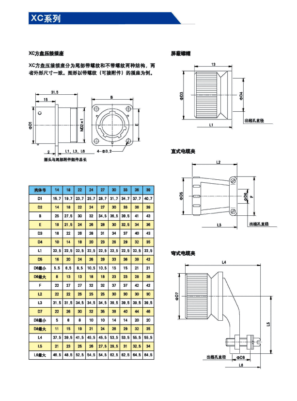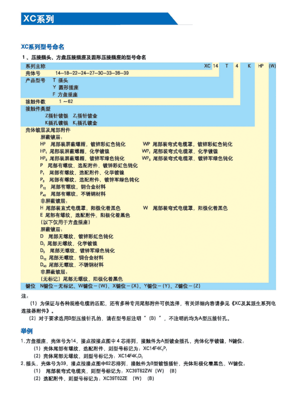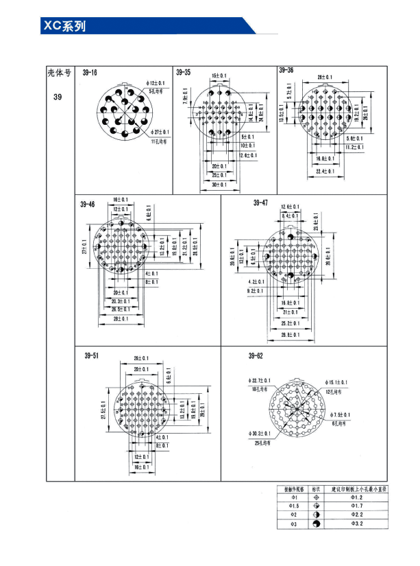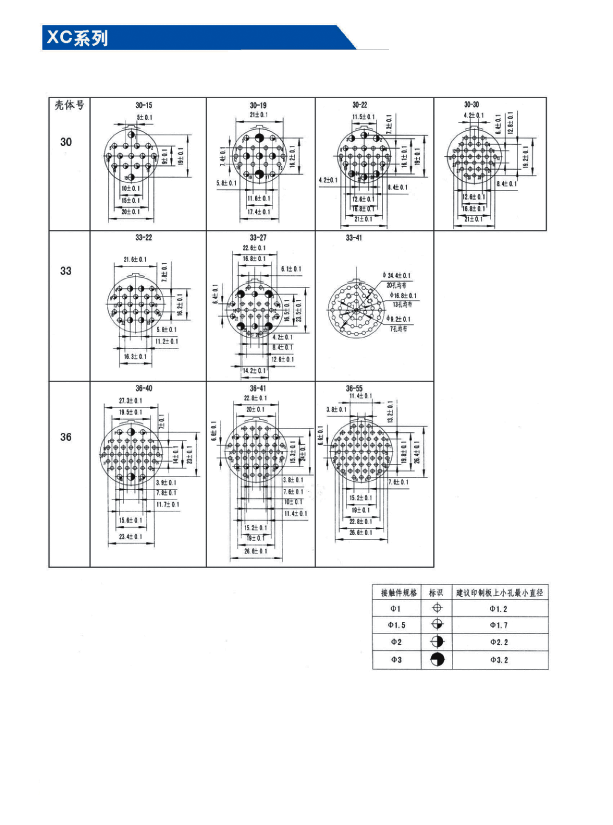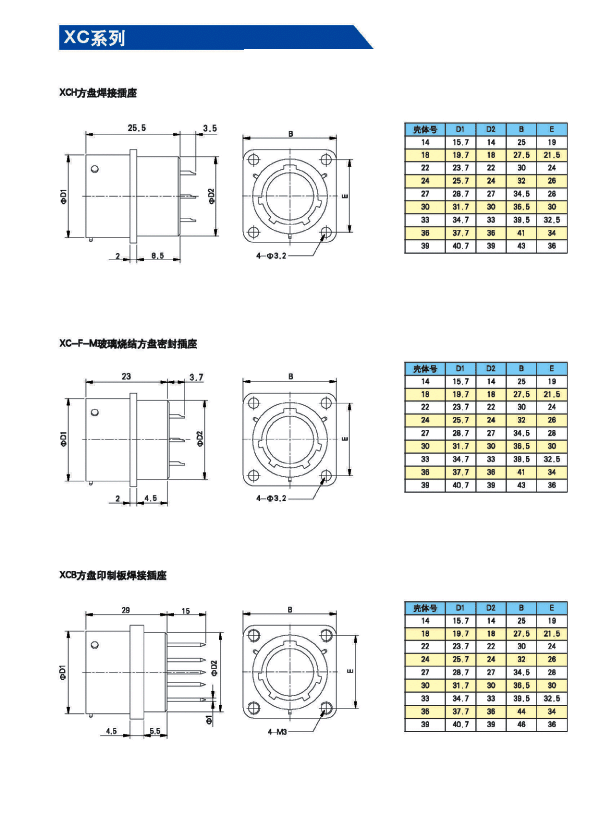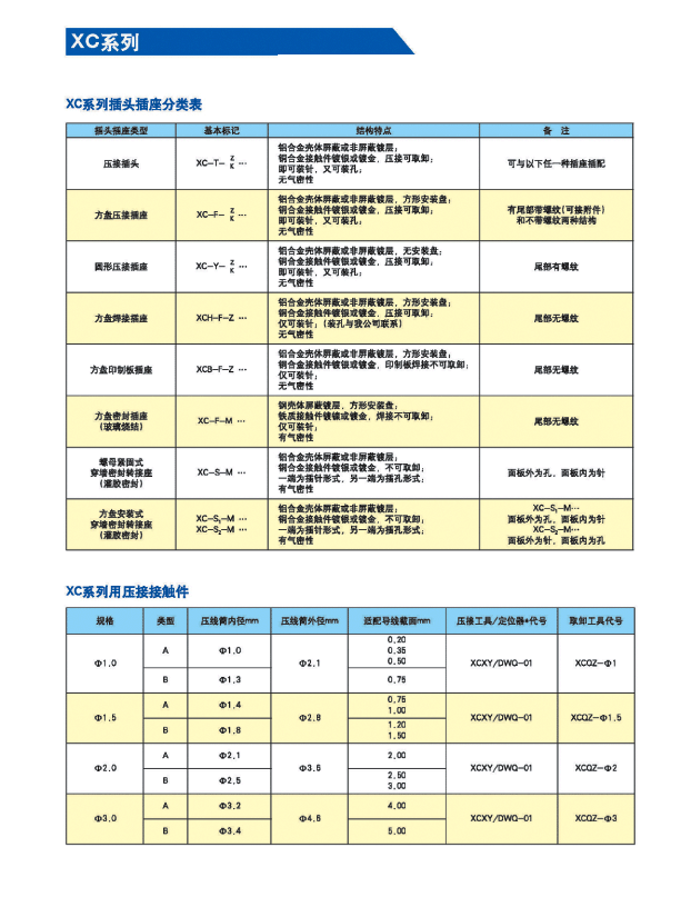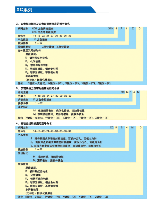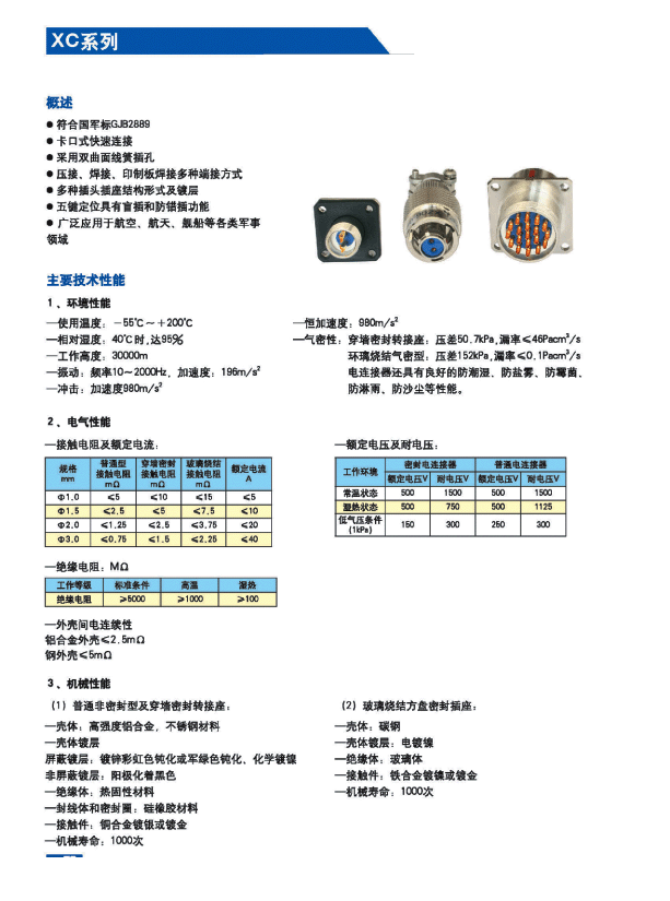 XC系列航空電連接器(航空插頭)為低頻類電連接器。九種殼體號;4種接觸件規格;32種孔位排列。從1孔到62孔。采用卡口式快速連接系統,操作方便,連接可靠,耐振動,抗沖擊。五鍵槽定位,具有盲插和防誤插功能。高可靠的雙曲面線簧孔使連接器插拔柔和,接觸電阻小,工作可靠。插座共有五種結構