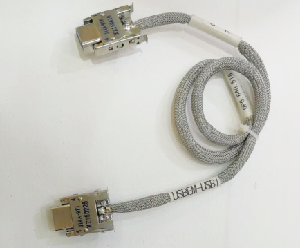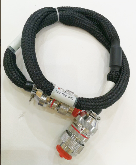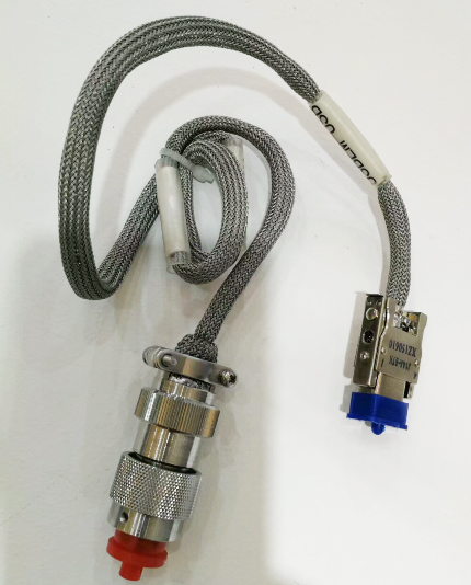 矩形航空插頭圓形航空插頭組合,中間是多股線連接,有屏蔽外套。是外在設備上的電流往儀器儀表上輸送,因為體積空間小改用矩形航空插頭,無需安裝空間。也有圓形航空插頭與圓形航空插頭對接,矩形航空插頭與矩形航空插頭對接,根據使用環境選擇。