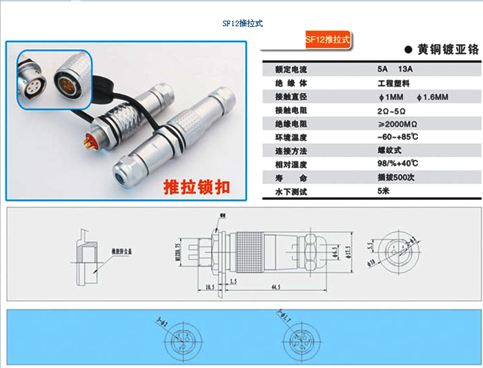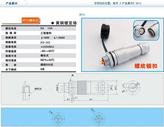 SF12系列條形防水電連接器,是根據以前XS12型連接器升級改造,能防水,在推拉方式基礎上,增加了螺紋連接方式。