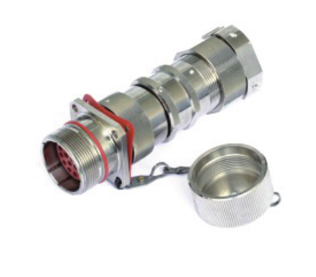 該系列防爆電連接器,在保持傳統產品安裝尺寸的基礎上,結構做了較大的改進,使之外型美觀,工作更加可靠,通過電流能力更大,安裝更加方便安全,尤其電纜連接方面具有既可焊接、也可壓接的特點,給用戶創造了極大的工作方便。該類產品按JB/T2729-1999標準設計生產的交流移動電站用的三相四極插頭插座,和按GB3936.8-2003《爆炸性氣體環境用電氣設備的第8部分“n”型電氣設備》標準設計生產的防爆連接器。該類產品由絕緣外殼、接觸器、固定螺釘、鎖緊螺母、插針、防塵蓋、連接鏈、墊木、膠皮圈、密封圈、墊片、壓板、螺釘、螺母組成,絕緣外殼前端以螺紋連接有接觸器,外側設有固定螺釘和鎖緊螺母;絕緣外殼內設有由兩層墊木中間夾有黑色膠皮圈構成的組合件,該組合件前端插裝有插針,外側設有防塵蓋,并與鎖緊螺母連接旋緊,防塵蓋外側中心設有固定螺釘,其上設有一個連接鏈;絕緣外殼內尾端設有密封圈和墊片,外側用鎖緊螺母旋緊,鎖緊螺母外側設有由螺母、螺釘、壓板構成的電纜卡緊件。此種防爆電連接器結構新穎,工作可靠,利用它可以在含有或可能產生爆炸性氣體混合物等惡劣工作環境下應用,保證電氣設備正常運行和安全生產。廣泛用于石油化工、國防、電力、航空、礦山,油漆或油墨廠家,木材加工廠,水泥廠,船務和污水處理等領域。
