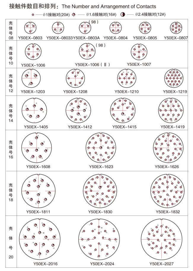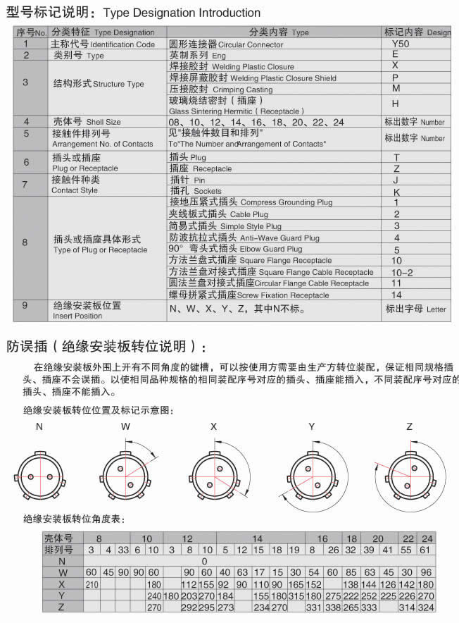 Y50EX防水密封航空電連接器,采用卡口式連接系統,具有快速控接和快速分離,體積小、重量輕等特點。插頭有多種電纜安裝形式,即:電纜夾線板式、簡易封裝式、接地壓緊式、防波抗拉式、彎頭護線式、電纜話筒式和彈簧護線式等。電纜出線口備有各種規格不同的密封橡膠護線縣,能與電纜線緊密配接,增強了電纜線和連接器插頭的防雨、防水、防塵密封性和抗拉性能。接觸件焊接,殼體有屏蔽和非屏蔽以及多種鍍層可選,插座有一般密封和玻璃燒結密封等類觀,以適用不同的工作環境。適用于戰略戰術系統,電子對抗系統,野外作業電能,通訊信號連接系統,航大航空航海通訊和測試跟蹤系統,計算機系統、郵電鐵路指揮系統,進口醫療儀器設備等電能、電訊信號的近接。