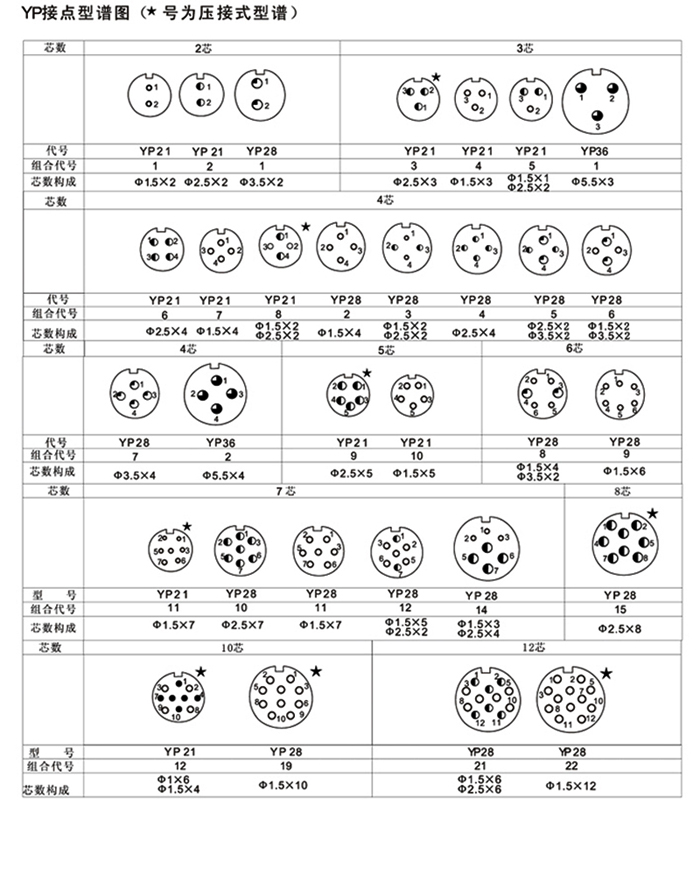 YP系列 圓形電連接器(航空插頭)簡介:根據用戶的需求而開發,集Y2系列與P型電連接器的優點和功能,具有Y2的卡口式連接結構,采用P型連接器的接觸件排列型譜。該系列產品具有體積小,重量輕,接點型譜廣,快速分離之特點。