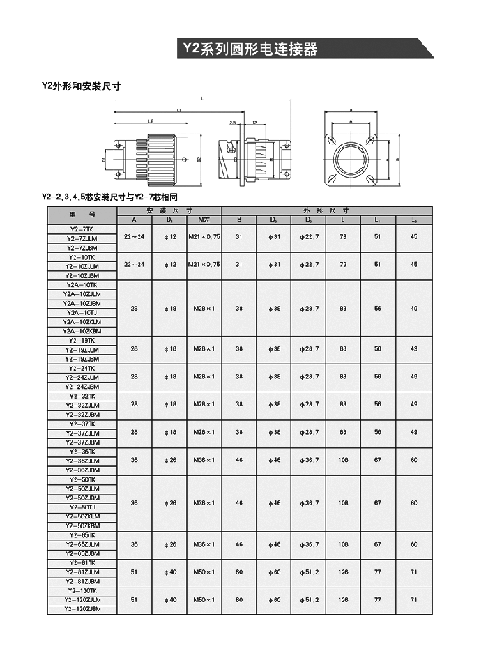 Y2系列軍用級圓形航空插頭,是老式“P”型電連接器(航空插頭)的換代產品,具有體積小、重量輕、使用方便、耐插拔,導電性能佳,密封性好的特點。廣泛適用于各類電器設備、儀器、儀表之間的線路連接。