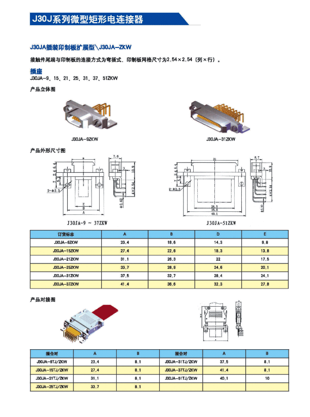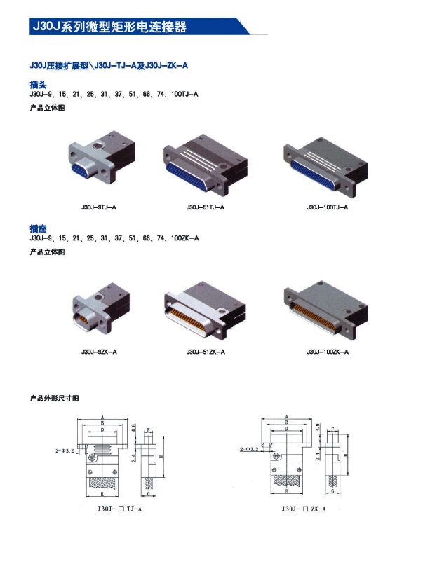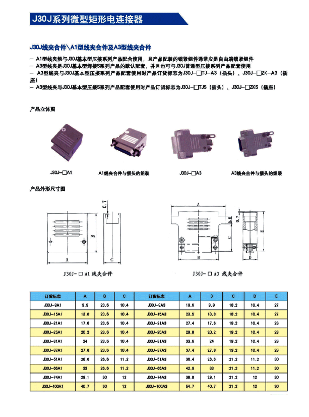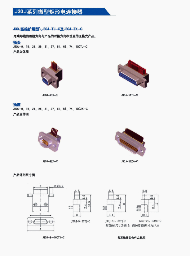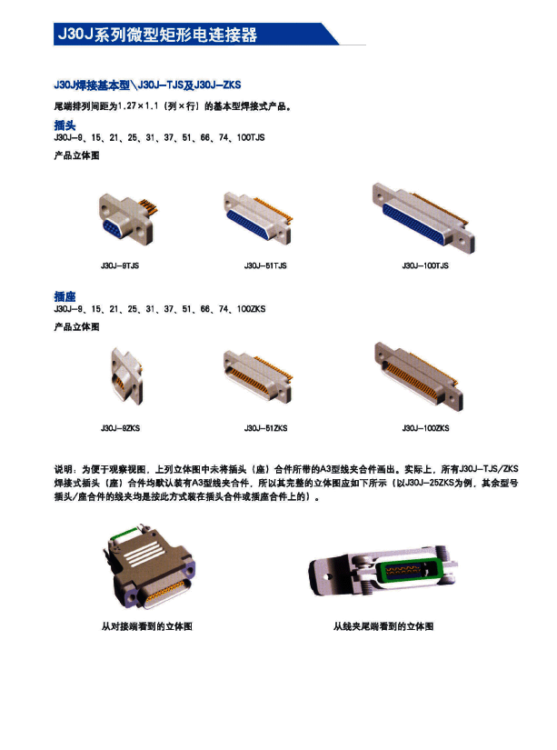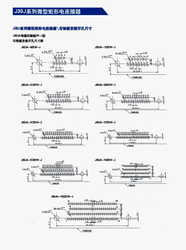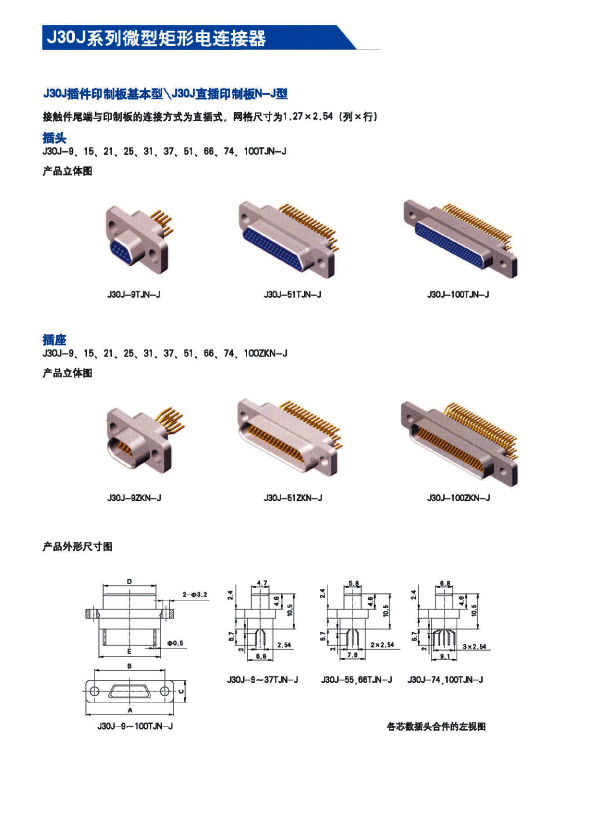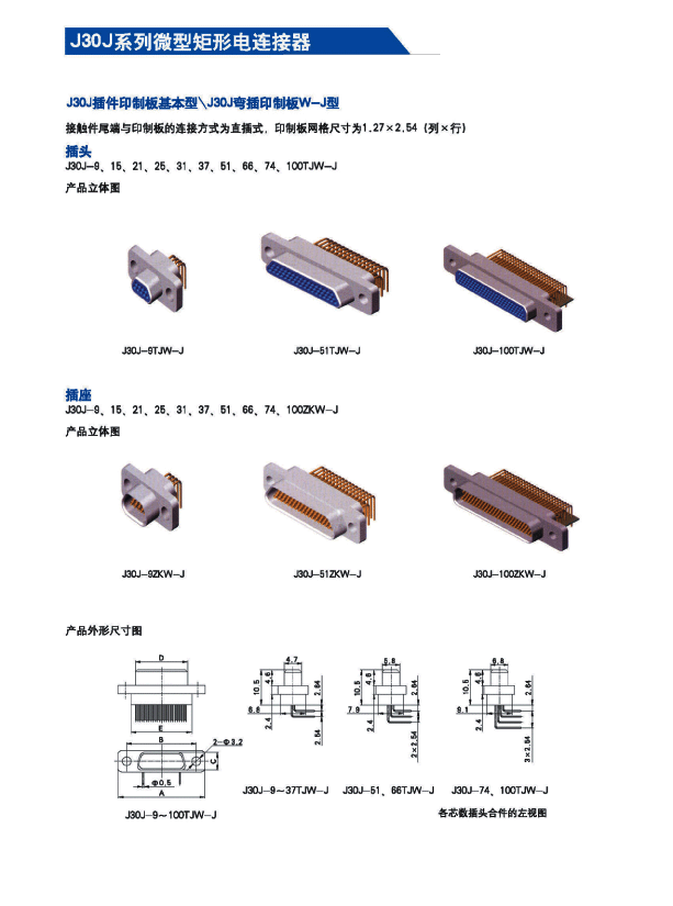 J30J矩形航空插頭符合CJB2446;間距1.27mm;產(chǎn)品采用金屬外殼;包括9芯-100芯等多種規(guī)格;有適用于印制板的尾端變更。