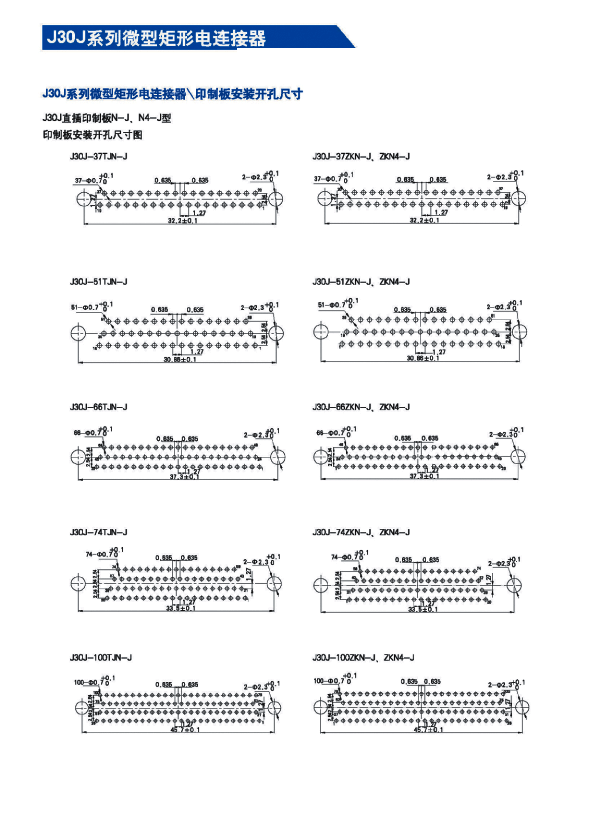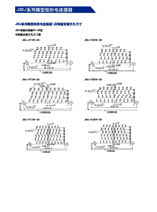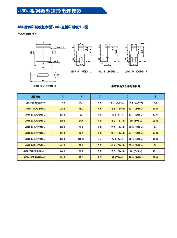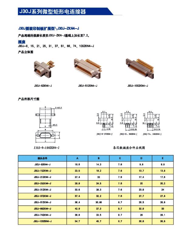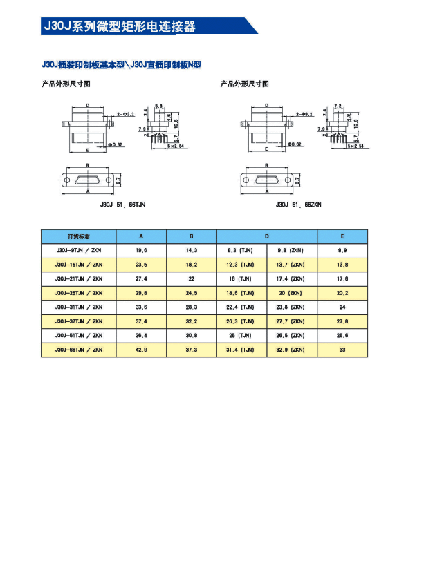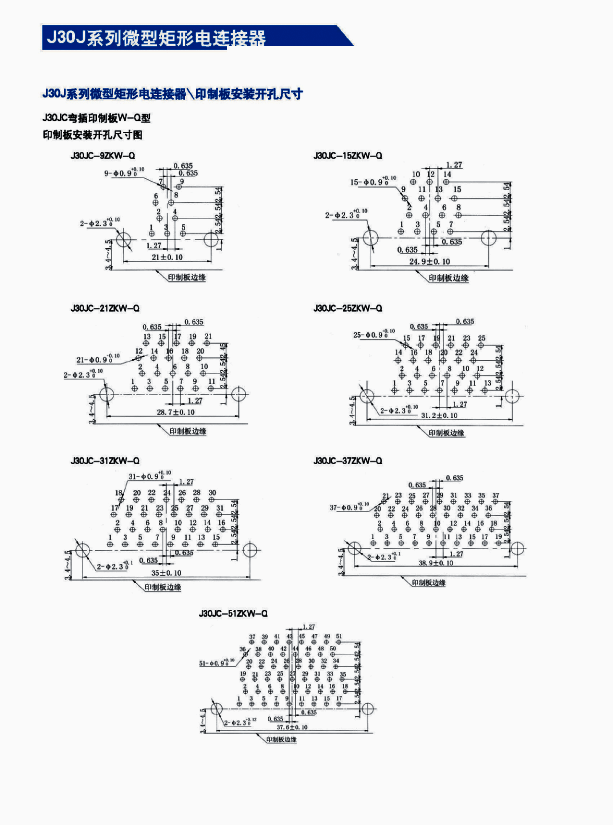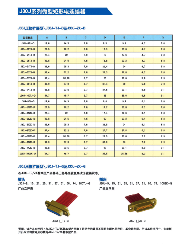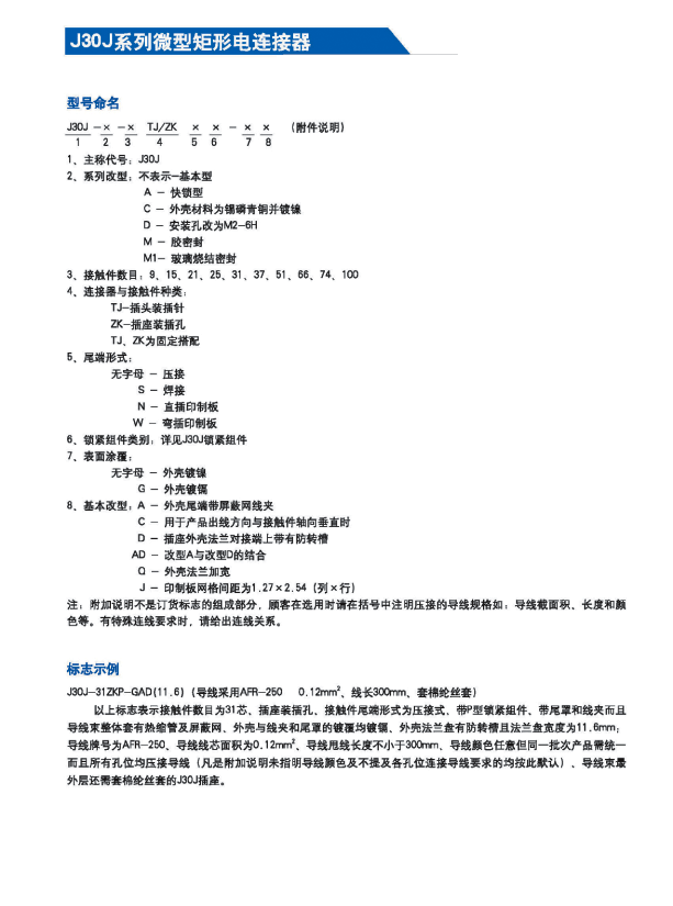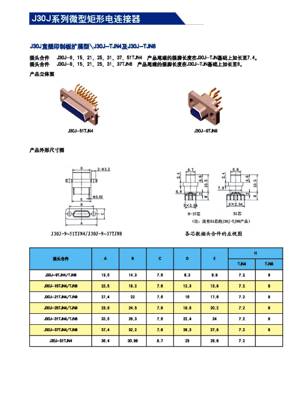 J30J矩形航空插頭符合CJB2446;間距1.27mm;產(chǎn)品采用金屬外殼;包括9芯-100芯等多種規(guī)格;有適用于印制板的尾端變更。
