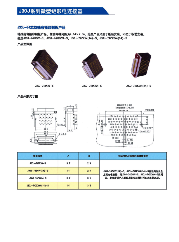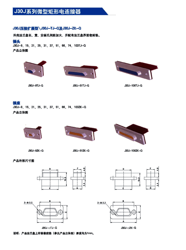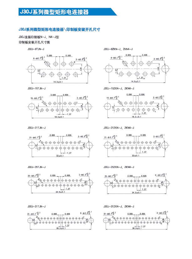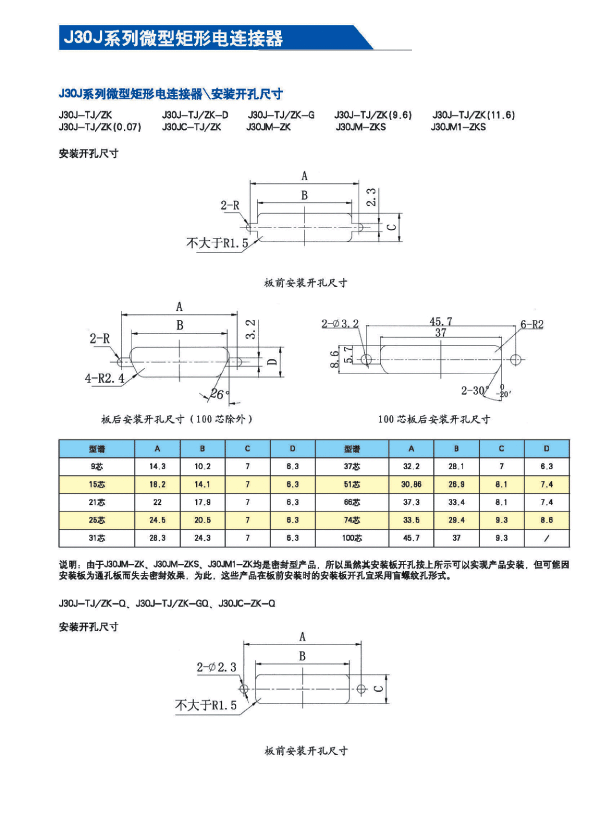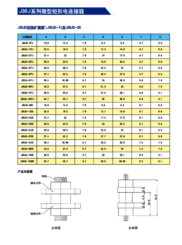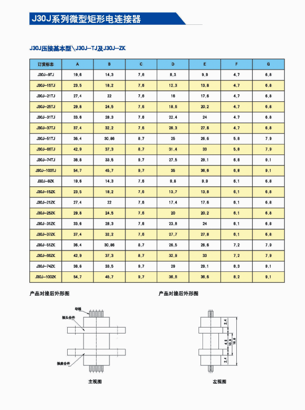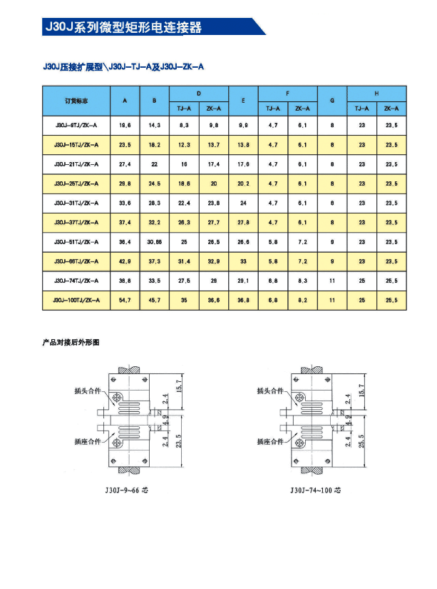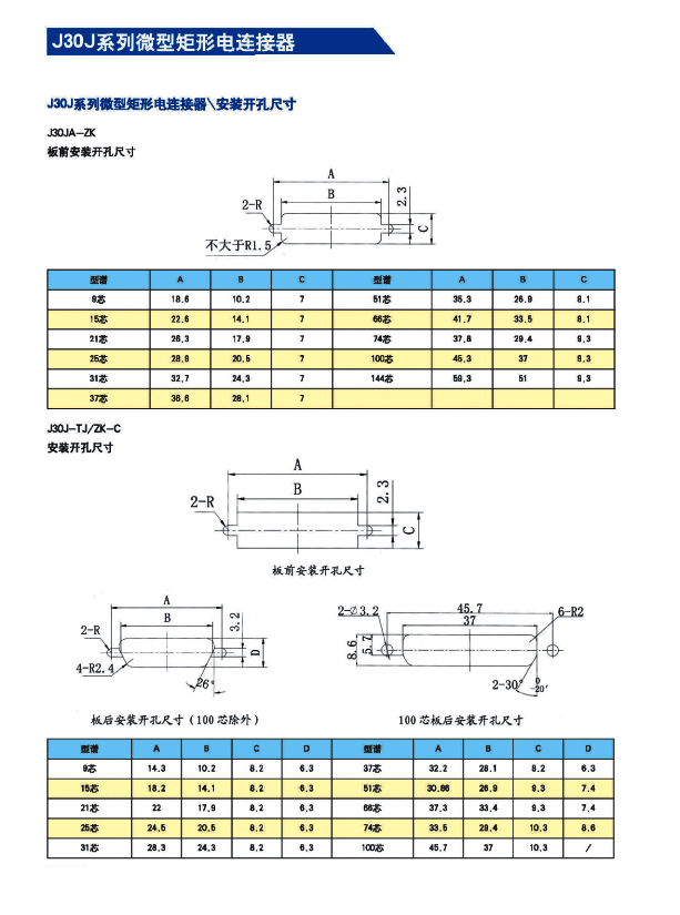 J30J矩形航空插頭符合CJB2446;間距1.27mm;產(chǎn)品采用金屬外殼;包括9芯-100芯等多種規(guī)格;有適用于印制板的尾端變更。
