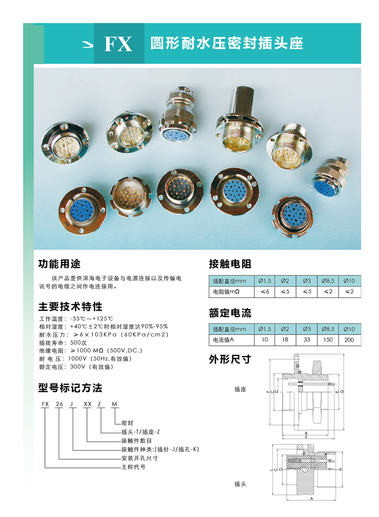 山西FX-40J19ZM耐水壓深海密封航空插頭座